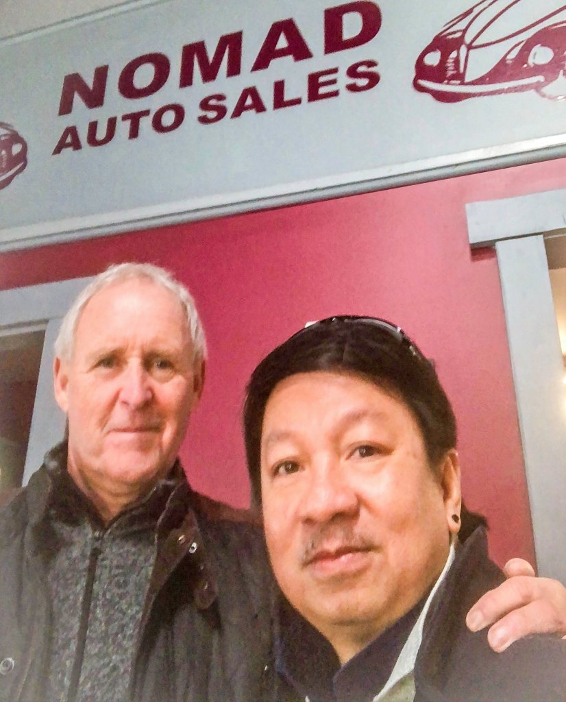Abbotsford-based used car dealership Nomad Auto Sales signs up AllWorks Digital Solutions to promote its inventory online. Owner and GM Bruce Walker is seen here giving Almonds his vote of confidence.